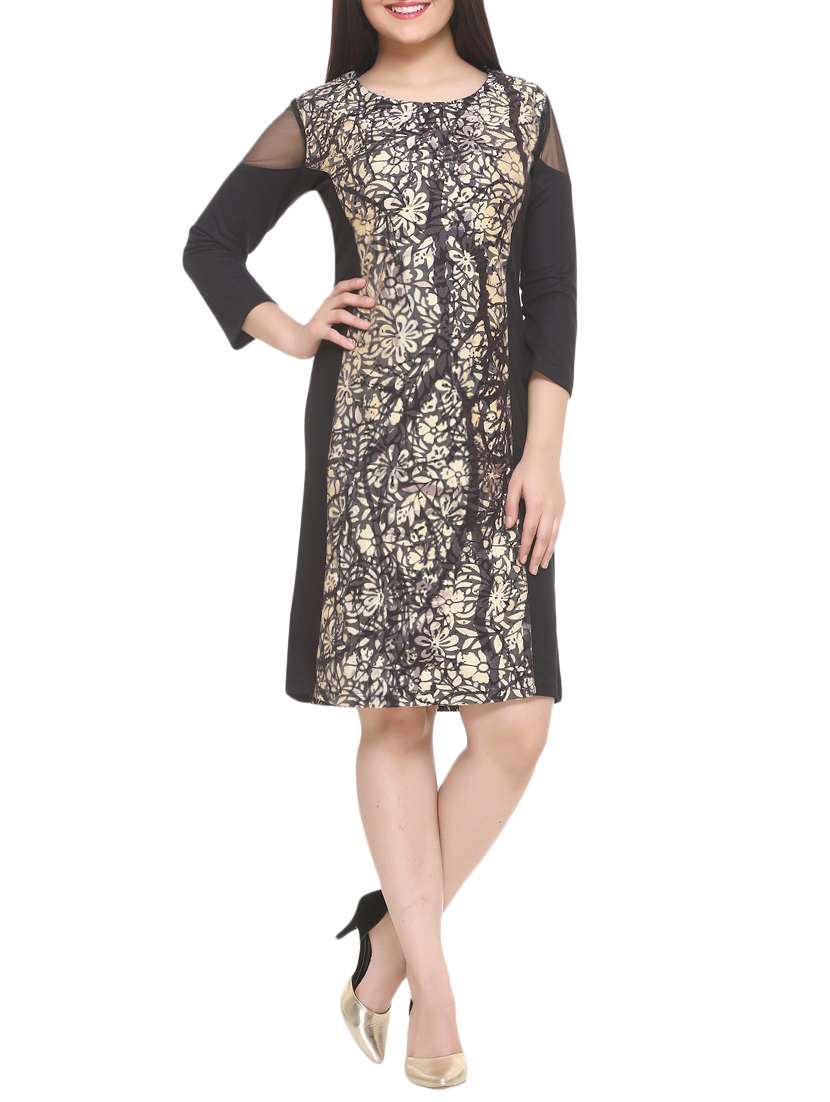 black printed a-line dress - 14905675 - Very Small Image - 1