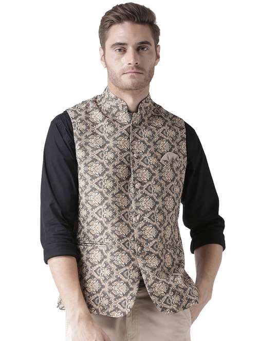 grey printed nehru jacket