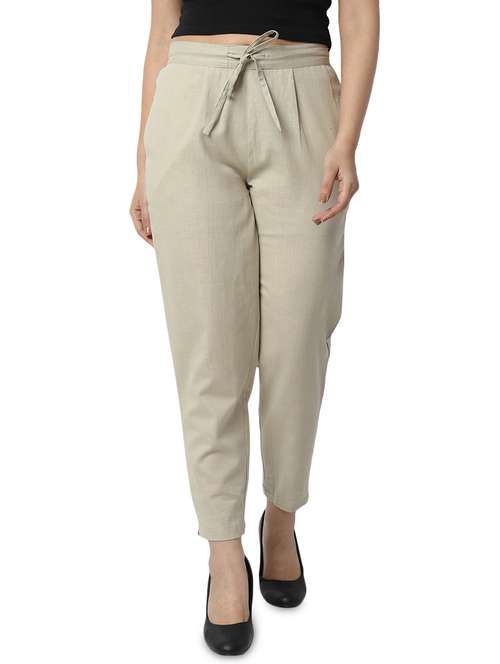 - » women solid beige pleated trouser
