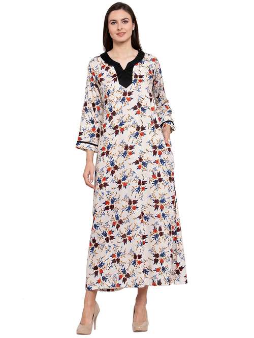 - » cream notch neck floral printed nighty