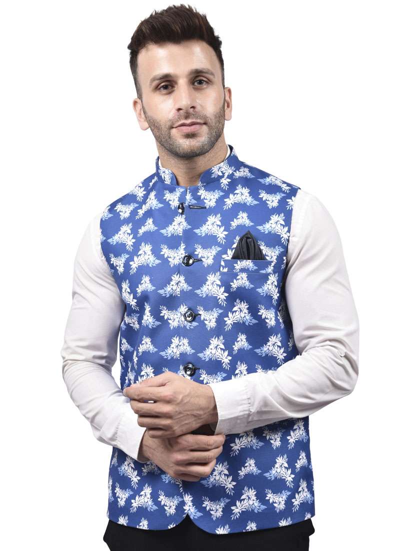 - Look stylish and confident in SLIDE FITT brands with blue Nehru jackets in which you will feel your best.