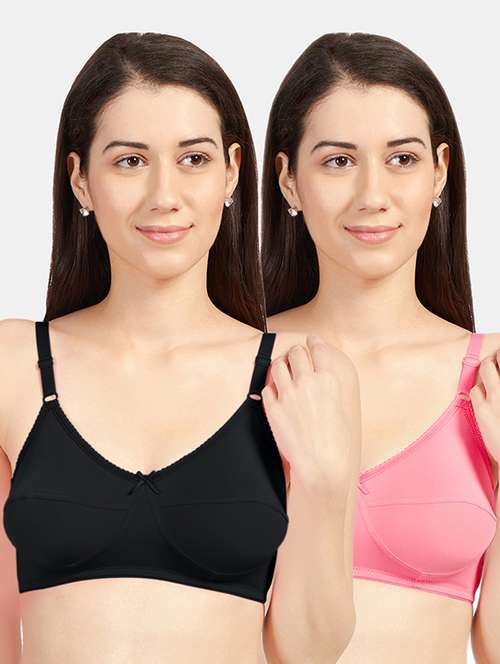 Wire-free for comfort and support. Full coverage for maximum support and no spillage from top and sides. Wide-High Centre panel for support & shaping. Seamed, non padded cups for great support. 2 row varying column hook & eye back closure. Cups constructed with a Double layer of fabric. Material used four way stretchable lycra