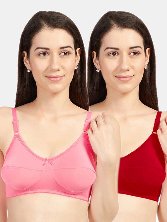 Wire-free for comfort and support. Full coverage for maximum support and no spillage from top and sides. Wide-High Centre panel for support & shaping. Seamed, non padded cups for great support. 2 row varying column hook & eye back closure. Cups constructed with a Double layer of fabric. Material used four way stretchable lycra