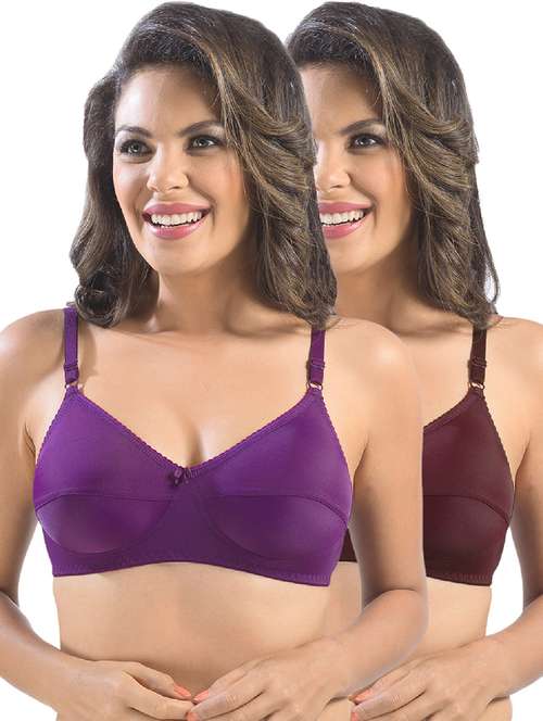 Wire-free for comfort and support. Full coverage for maximum support and no spillage from top and sides. Wide-High Centre panel for support & shaping. Seamed, non padded cups for great support. 2 row varying column hook & eye back closure. Cups constructed with a Double layer of fabric. Material used four way stretchable lycra