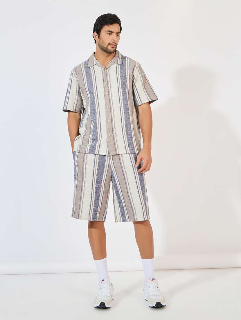 - » men cuban collar striped shirt & shorts co-ord set