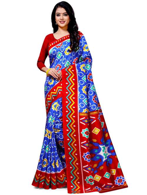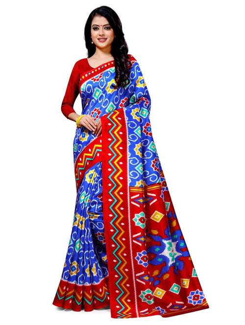 Sari Fabric Cotton Silk. Sari Length 6.30 M includes 0.80M blouse piece. Sari fabric type Soft & Light weight. Sari Color is Blue & Red. Sari Print is done on machine so colors will not fade while washing. Sari wash:: Hand Wash