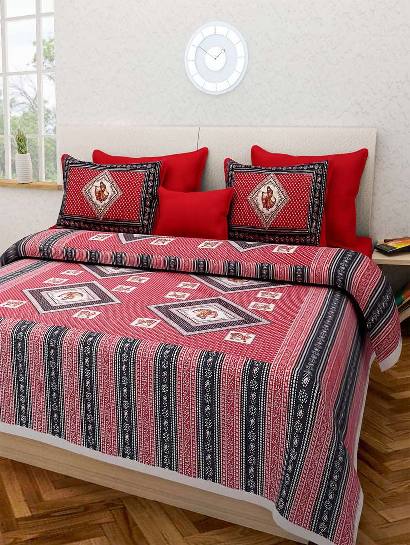 pure cotton rajasthani traditional double bed sheet  with 2 pillow covers - 14446243 - Very Small Image - 1
