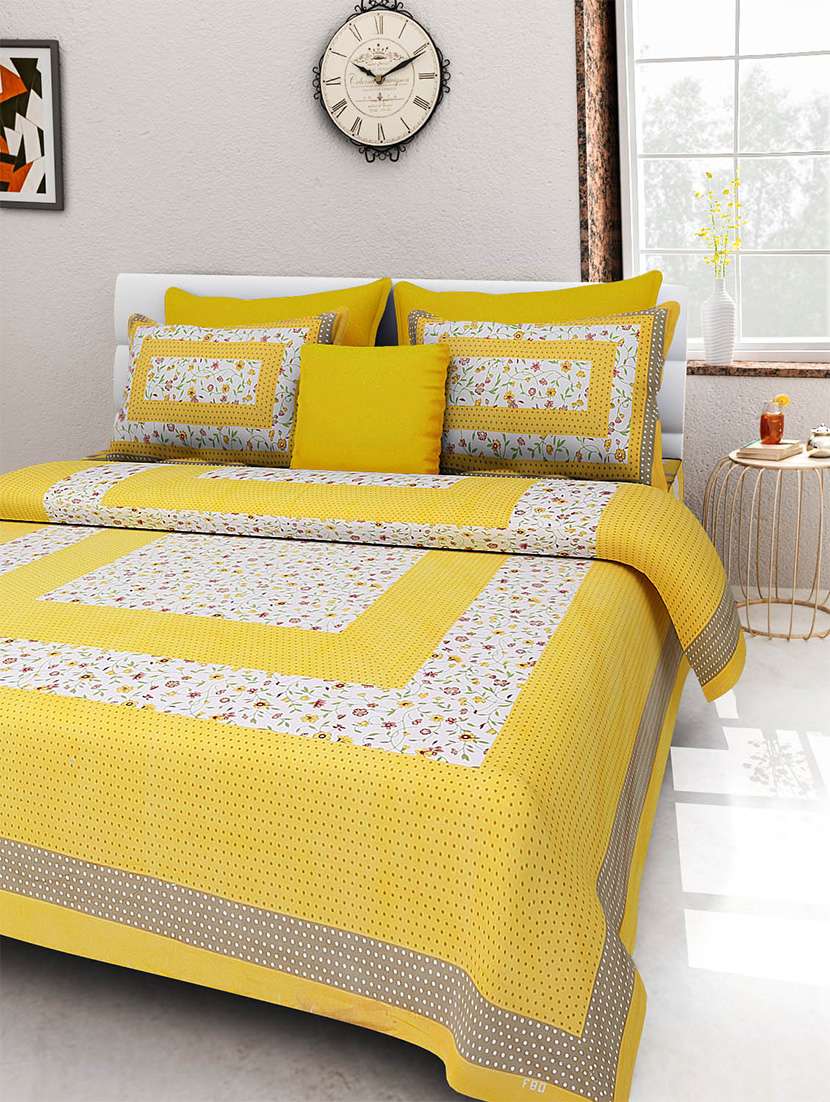 pure cotton rajasthani traditional double bed sheet with 2 pillow covers