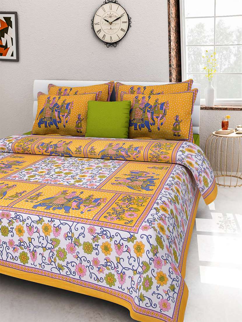 pure cotton rajasthani traditional double bed sheet with 2 pillow covers