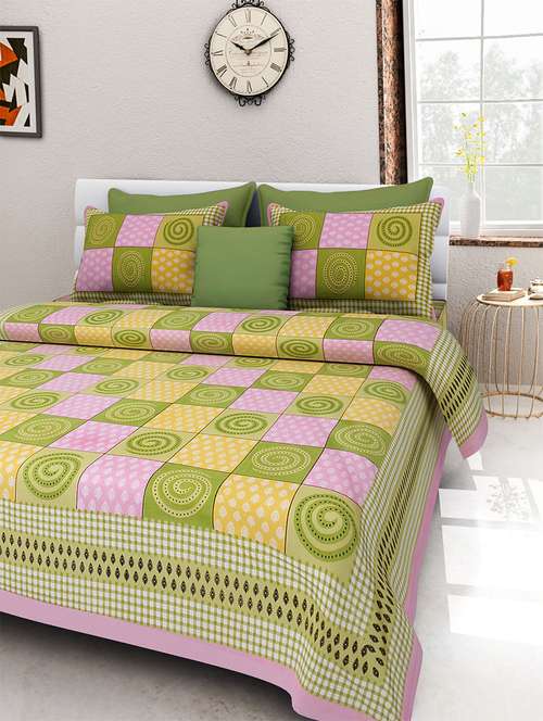 pure cotton rajasthani traditional double bed sheet with 2 pillow covers