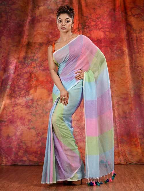 - » women color block handloom saree with blouse