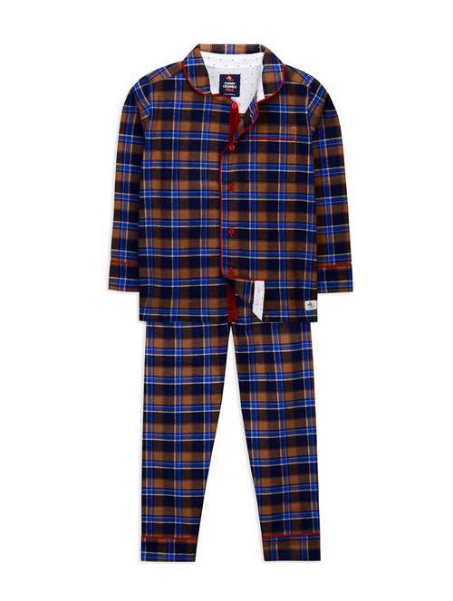 contrast piping checkered pyjama set