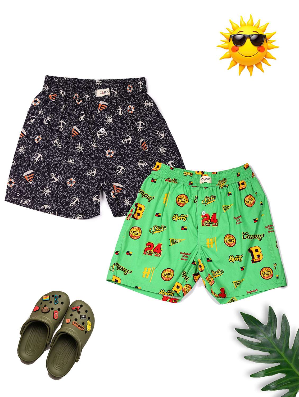 Elevate your little one’s everyday essentials with these stylish boys’ boxer shorts Pack of 2. Designed for maximum comfort, they feature a secure elastic waistband and a lively all-over print with sporty graphics, varsity numbers, and campus-inspired elements. Crafted from soft, breathable fabric, they provide all-day ease, making them perfect for lounging or layering under outfits. A great choice for young sports enthusiasts who love a fun and energetic touch in their wardrobe.
