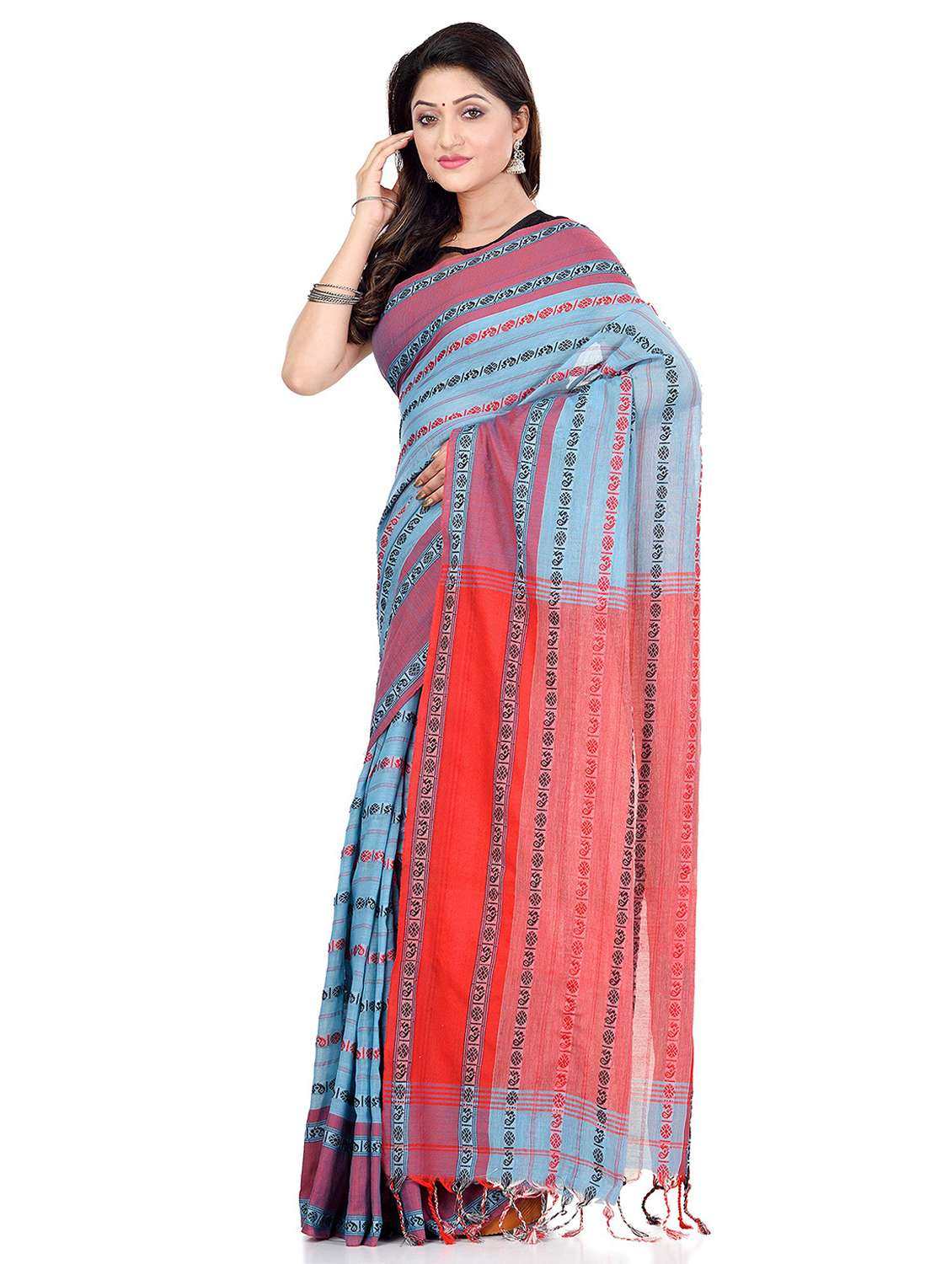 women self design handloom saree with blouse