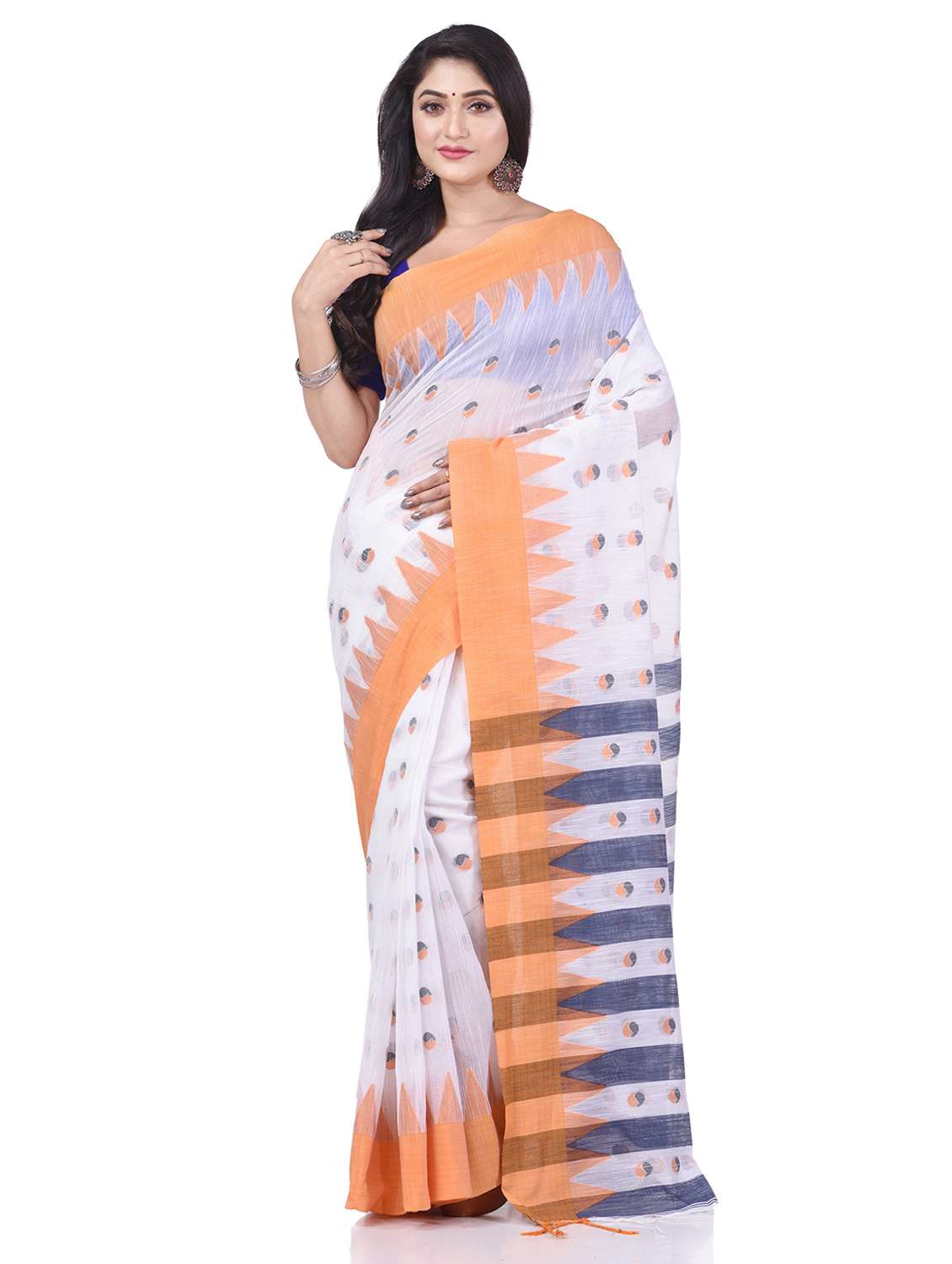 Explore the collection of beautifully Bengal Traditional Tant/Tangail Big Temple Par Handloom Hand Made Soft Khadi Bicolor Ball Temple Par Cotton Saree of West Bengal designed sarees from Desh Bidesh. Each piece is elegantly crafted and will surely add to your wardrobe. Pair this piece with heels or flats for a graceful look. You can wear this saree in all occasions specially Puja, Party and any occasion in your family or friends. The decorative material is Cotton Threads. Its unique color combination and Soft Bengal handloom Cotton tant saree The Elegant Class saree has comes from the Desh Bidesh. customer satisfaction is the utmost priority . The color may vary due to screen setting . Fabric: Cotton; Length: 6.3 meter Set Content: With Blouse Piece Care Instructions: Dry Clean Only Wash Care : Dry Wash Only, Don’t Bleach