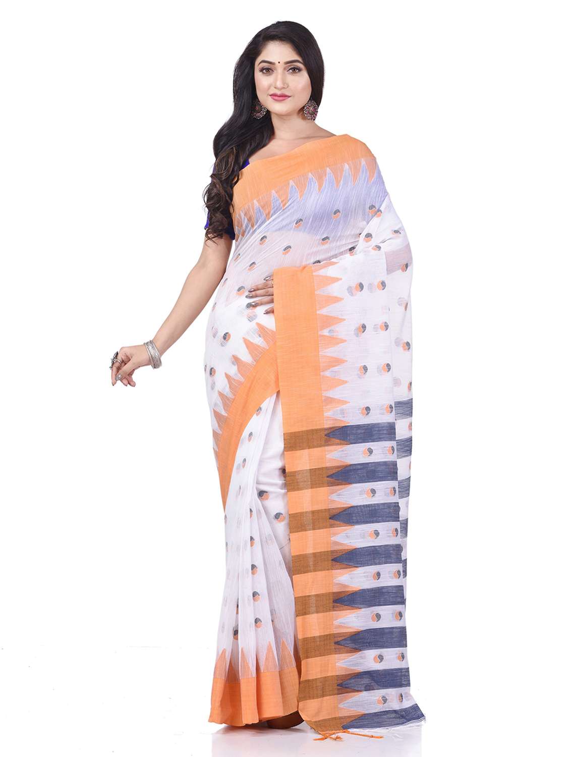 Add something extra to your grace and elegance with these saree collection from DESH BIDESH Tantloom specialises in handloom premium quality Bengali saree. Sure to add shine and lustre to your wardrobe, each piece is elegantly hand crafted to give you the look of fashion leader. Perfect for all occasions be it party, wedding, pooja or festivals this collection is going to be your companion for all your needs. You can pair these with heels or flats of your choice to complete the look.