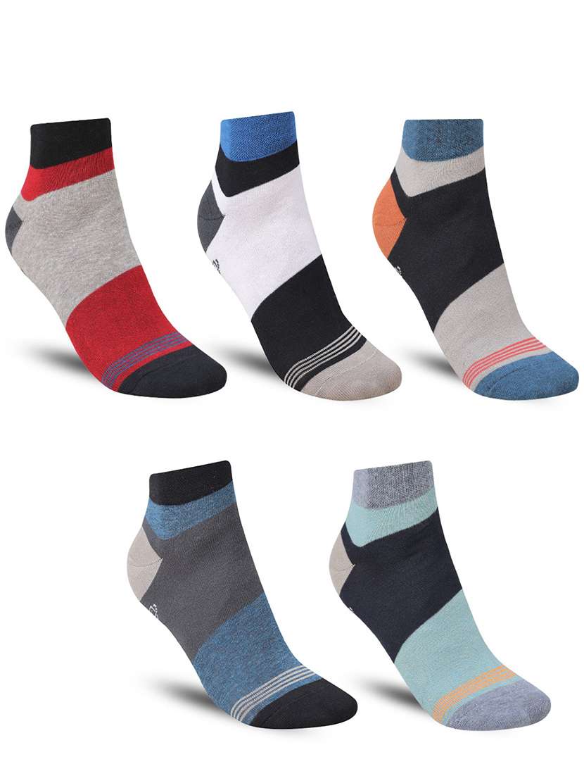 men color block cotton ankle length socks combo