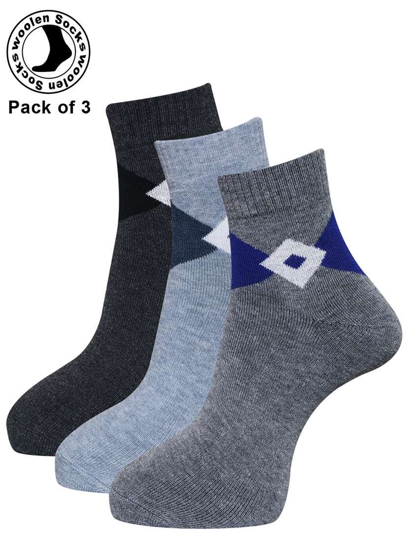 Dollar Socks Woollen Towel Ankle Length for Men's Free Size In (3 Pair)