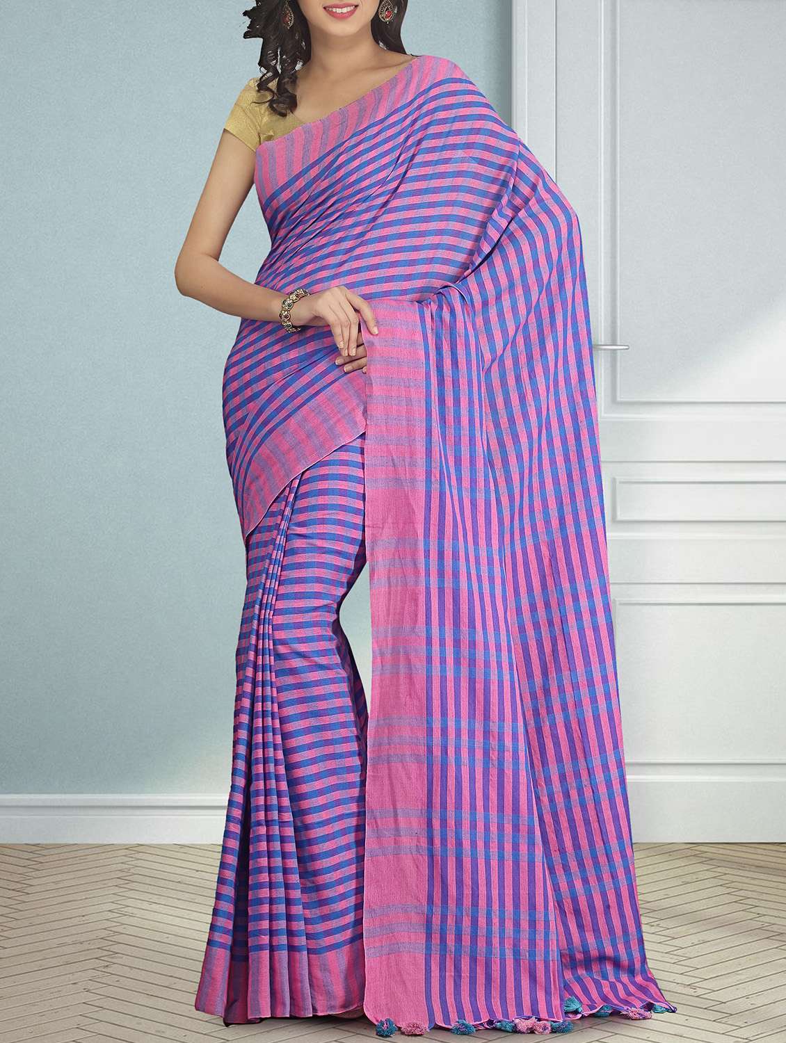 - » blue cotton tant saree