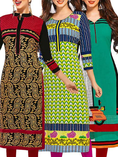 - » set of 3 multi colored cotton unstitched kurta