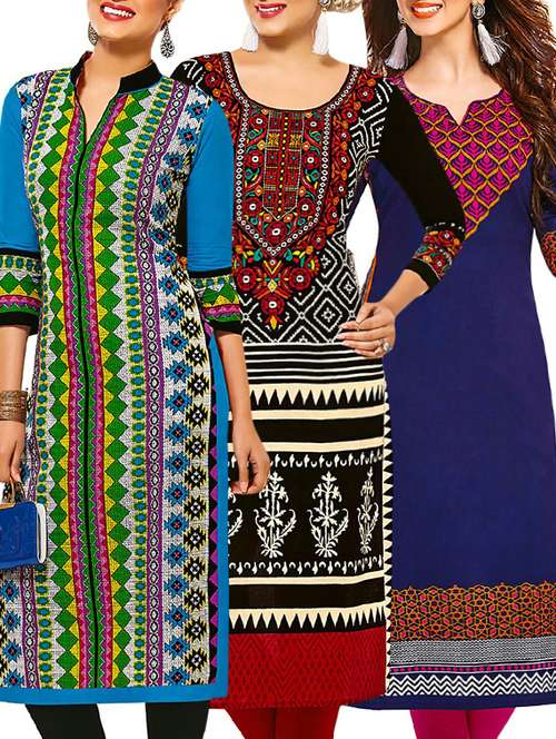 set of 3 multi colored cotton unstitched kurta - 13377510 - Very Small Image - 1
