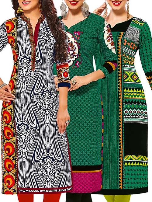 set of 3 multi colored cotton unstitched kurta - 13378593 - Very Small Image - 1