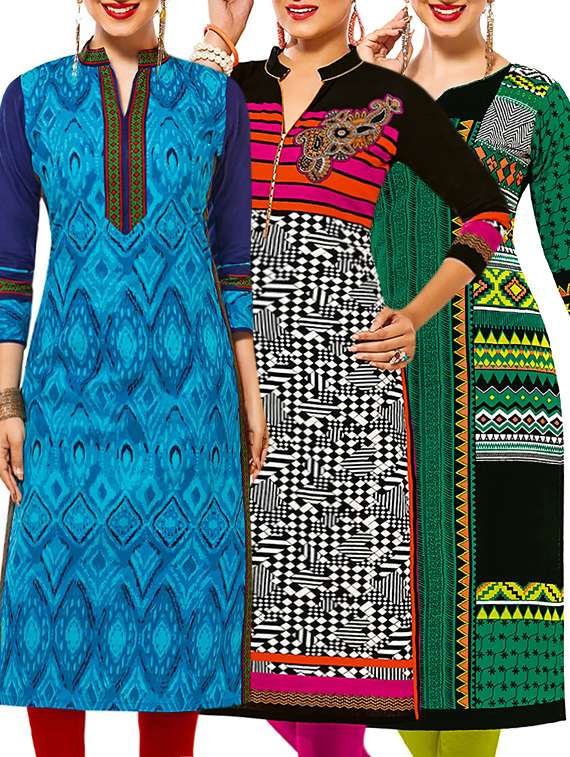 set of 3 multi colored cotton unstitched kurta