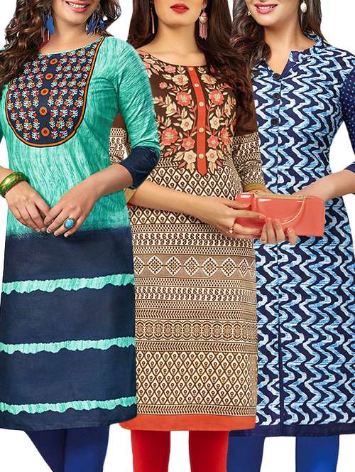 set of 3 multi colored cotton unstitched kurta