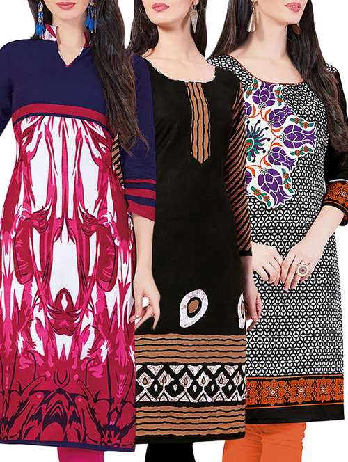 set of 3 multi colored cotton unstitched kurta
