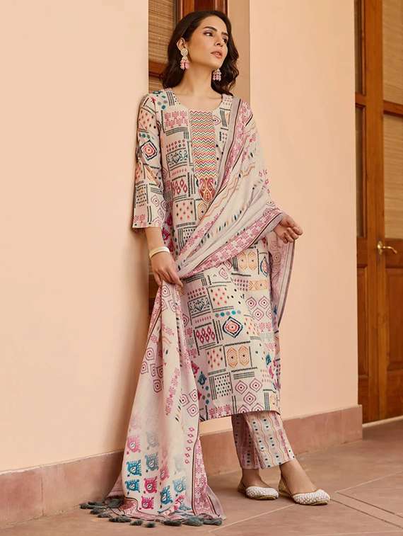 - Find gorgeous sets of ethnic wears in trending designs in cream colors suitable for casual wear of occasions.