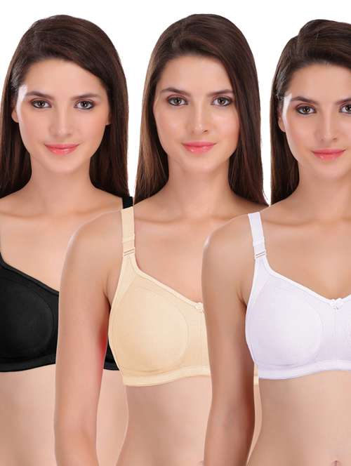 Featherline Perfect Fitted Poly Cotton Non-Padded Seamless Full Coverage Women's Minimizer Bra. The M-frame, full-support bra is crafted with poly cotton fabric. Its straps are centrally aligned ensuring a comfortable feel. The bra is non-wired and prevents any discomfort. The bra provides full coverage and excellent conical shape with its seamless cups. The reinforced seam, broad side wings and U-shaped back offer additional support. The broad back band and brushed elastic give a smooth and soft feel. Its underbust is designed with imported elastic. The high centre gore and a cute bow in between add to its style. Elasticated Adjustable Straps for snug fit.