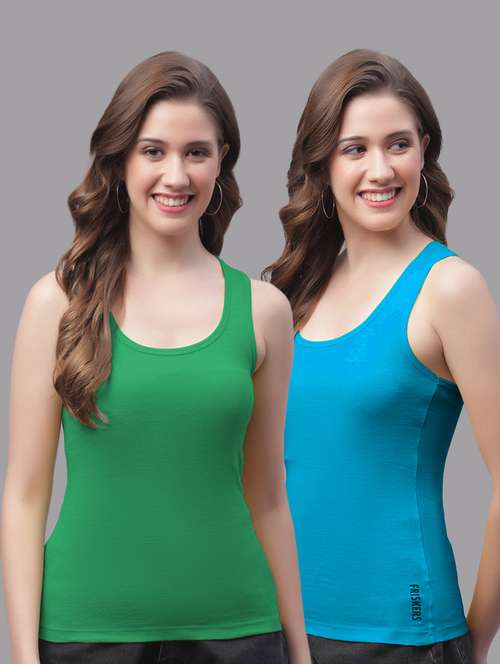 women set of 2 multicolored solid tank top