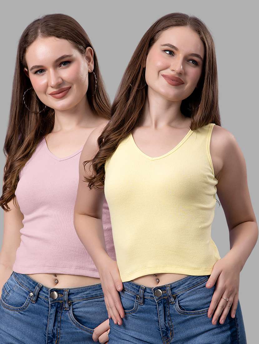 women pack of 2 solid sleeveless crop top - 21561108 - Very Small Image - 1