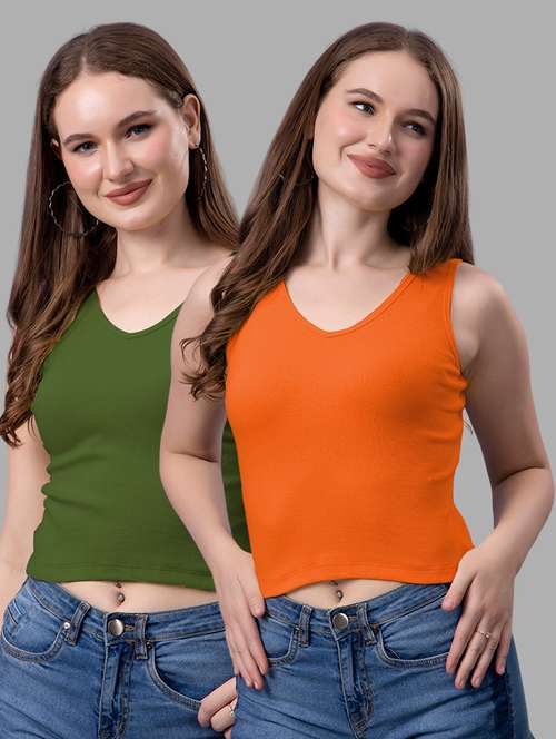 women pack of 2 solid sleeveless crop top - 21561120 - Very Small Image - 1