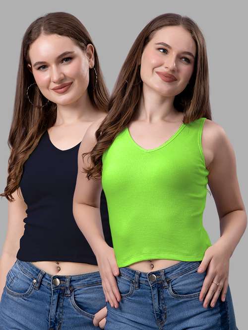 women pack of 2 solid sleeveless crop top - 21561123 - Very Small Image - 1