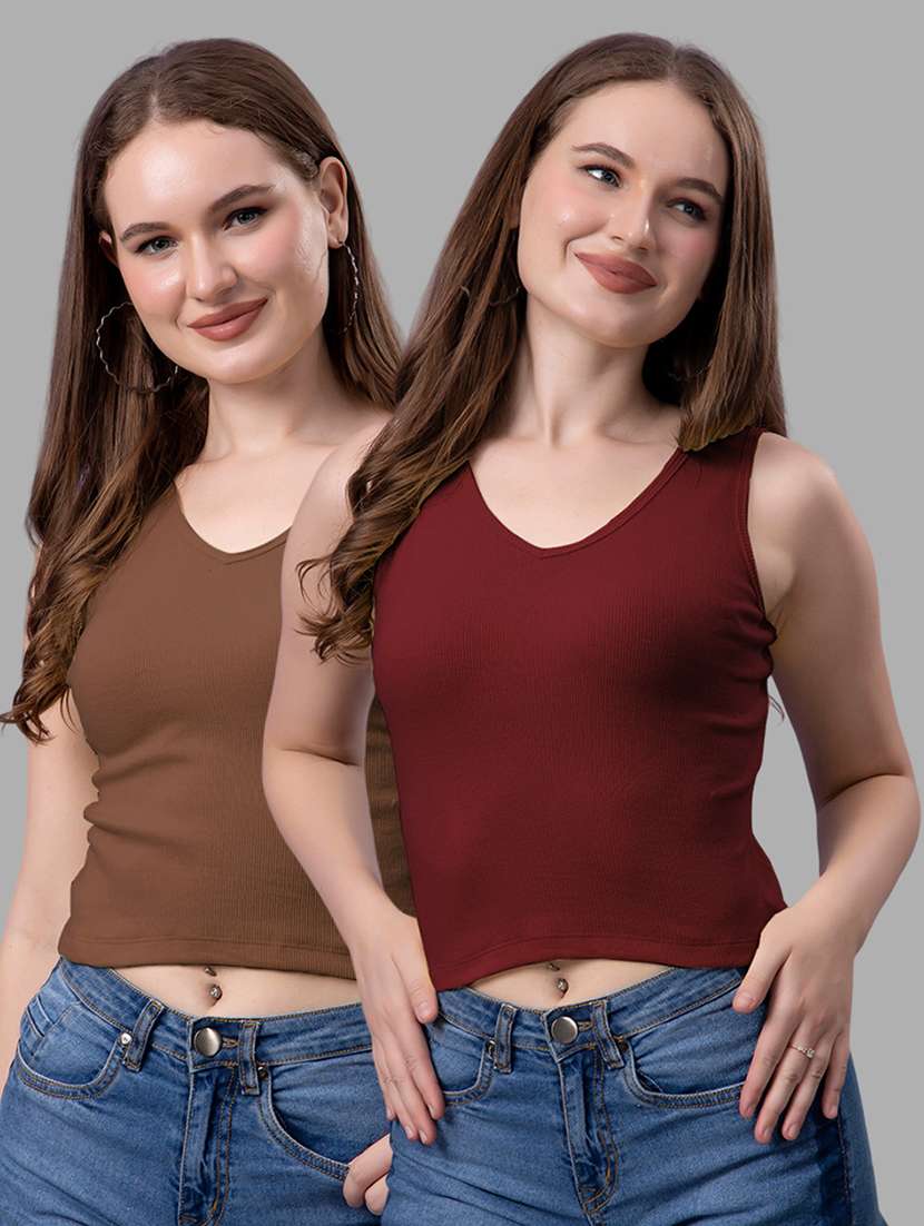 women pack of 2 solid sleeveless crop top - 21561132 - Very Small Image - 1