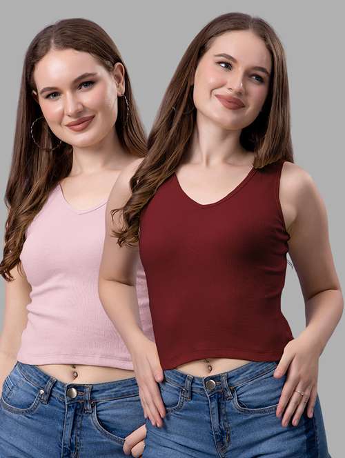 women pack of 2 solid sleeveless crop top