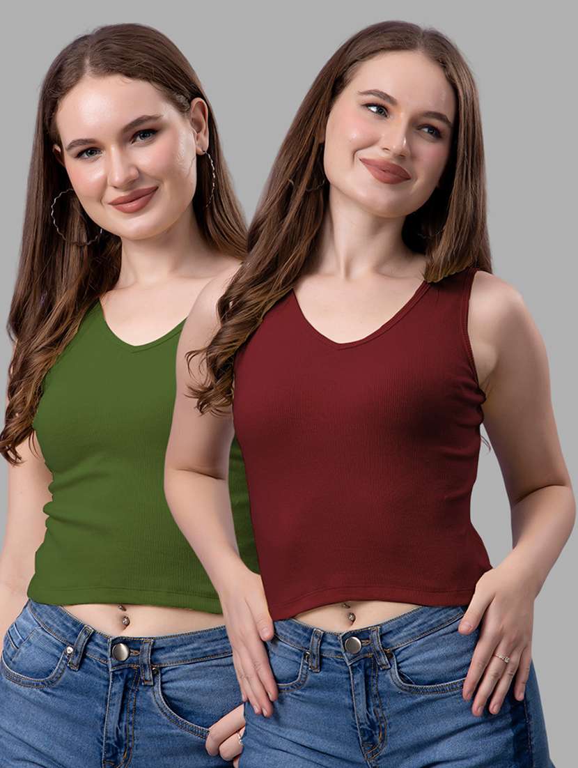 women pack of 2 solid sleeveless crop top