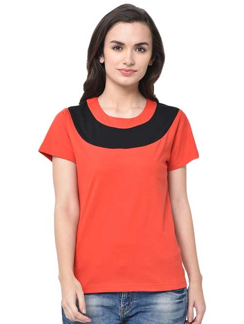 - » women's color block round neck t-shirt