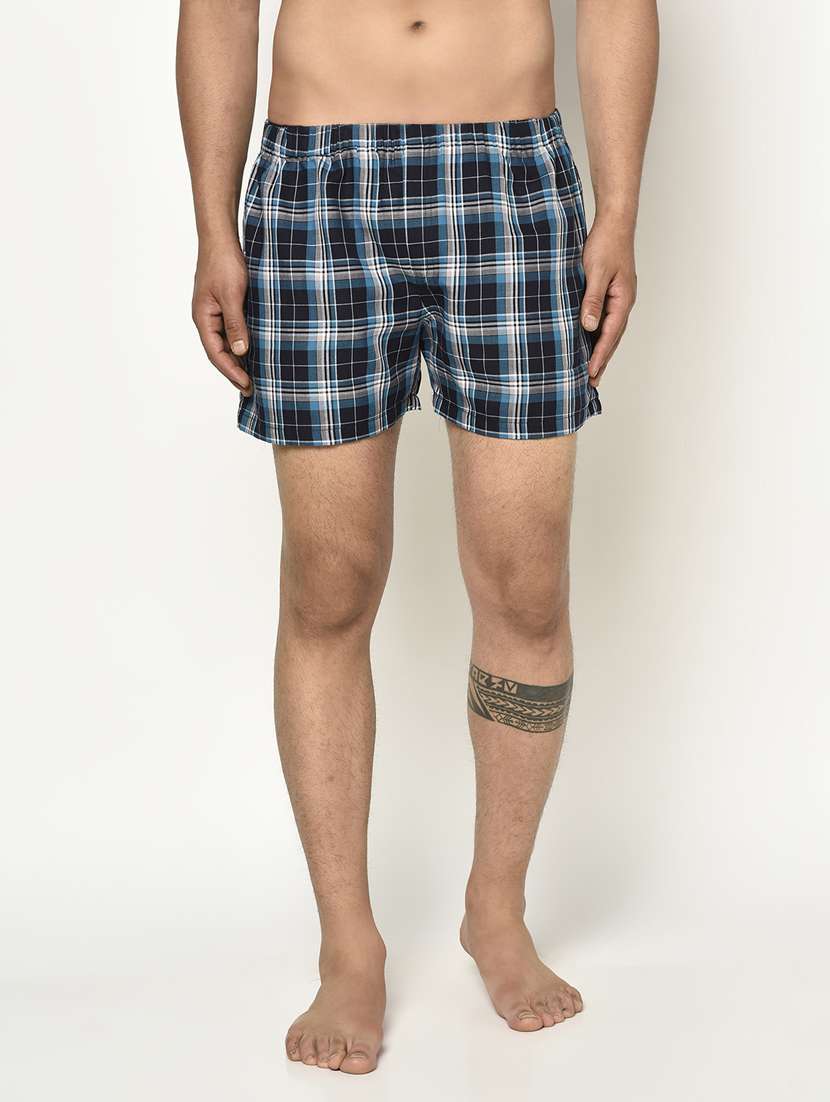 - » navy-blue checkered boxer