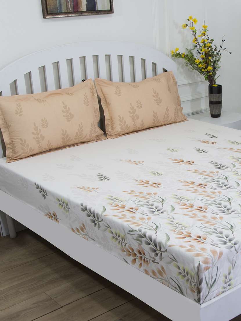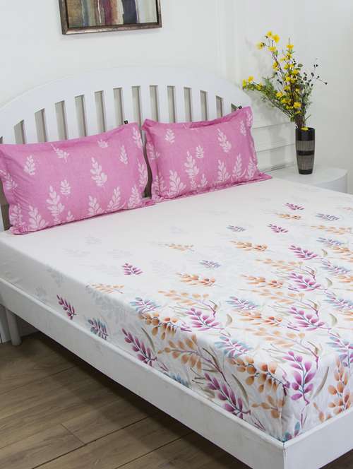 gm floral 144 tc 100% cotton digital print multi color double bedsheet with 2 pillow covers