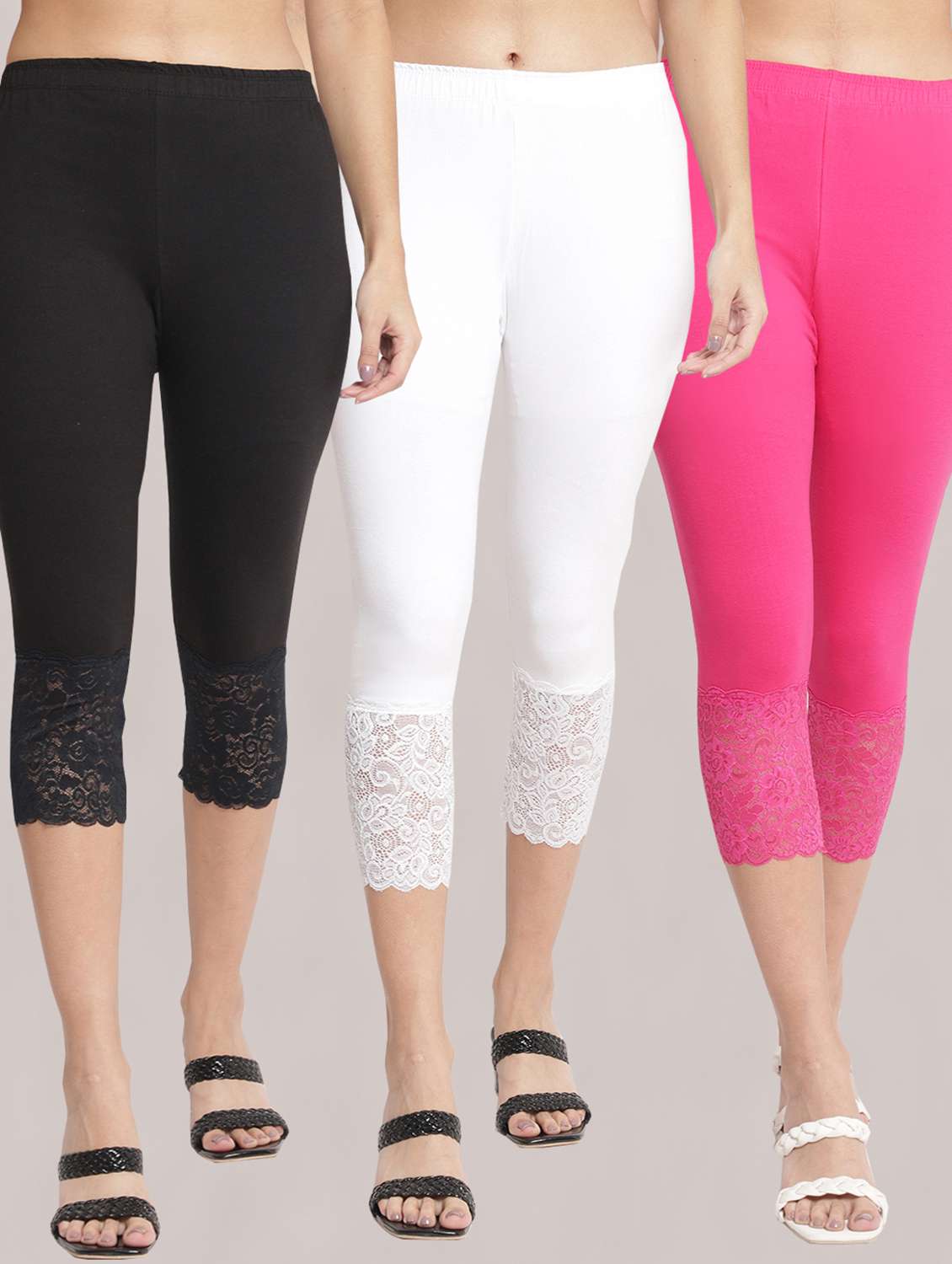 pack of 3 solid leggings capri