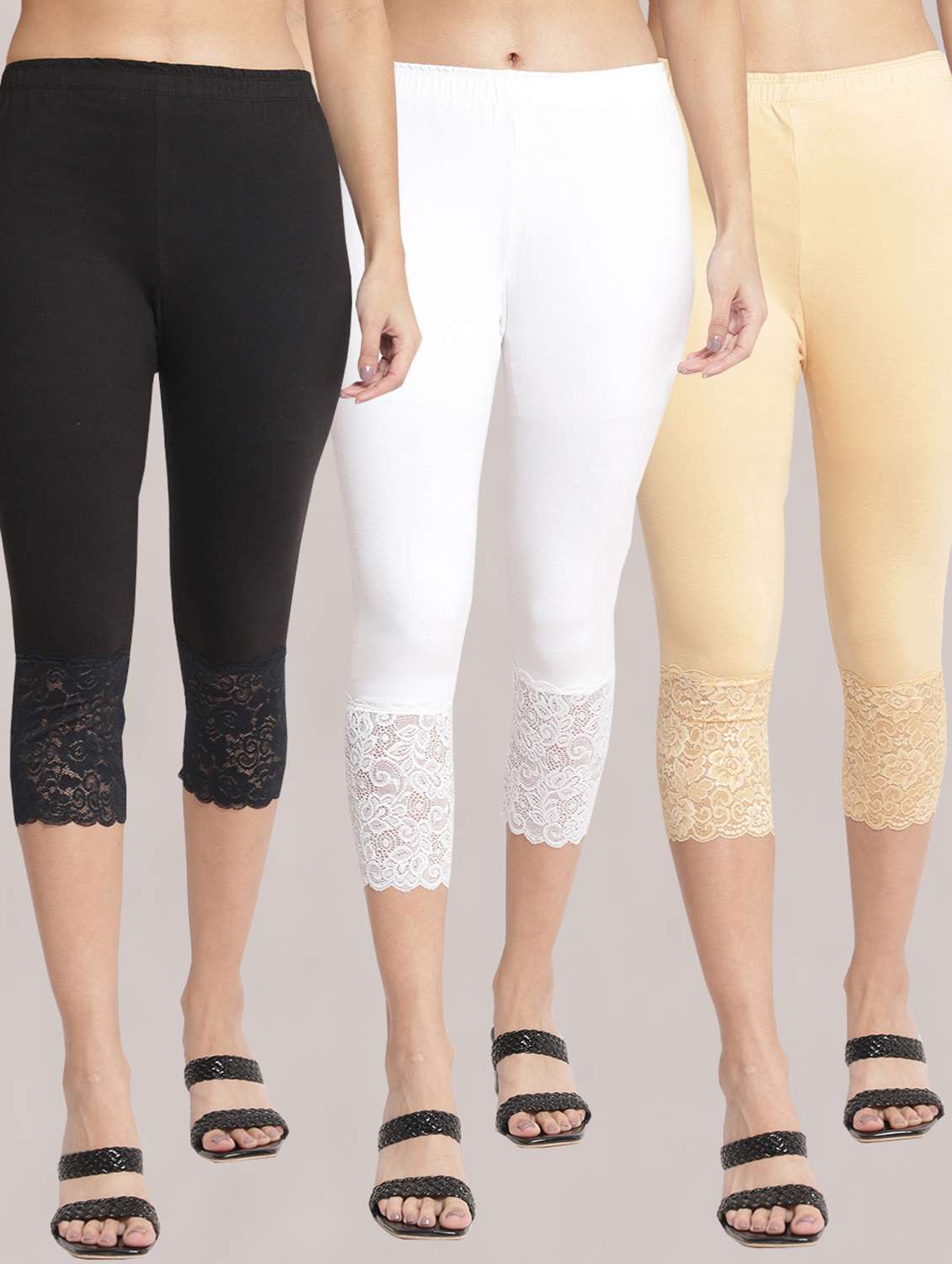 pack of 3 solid leggings capri