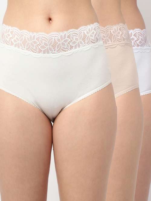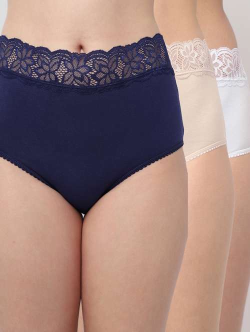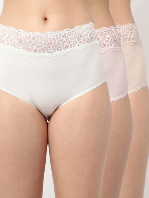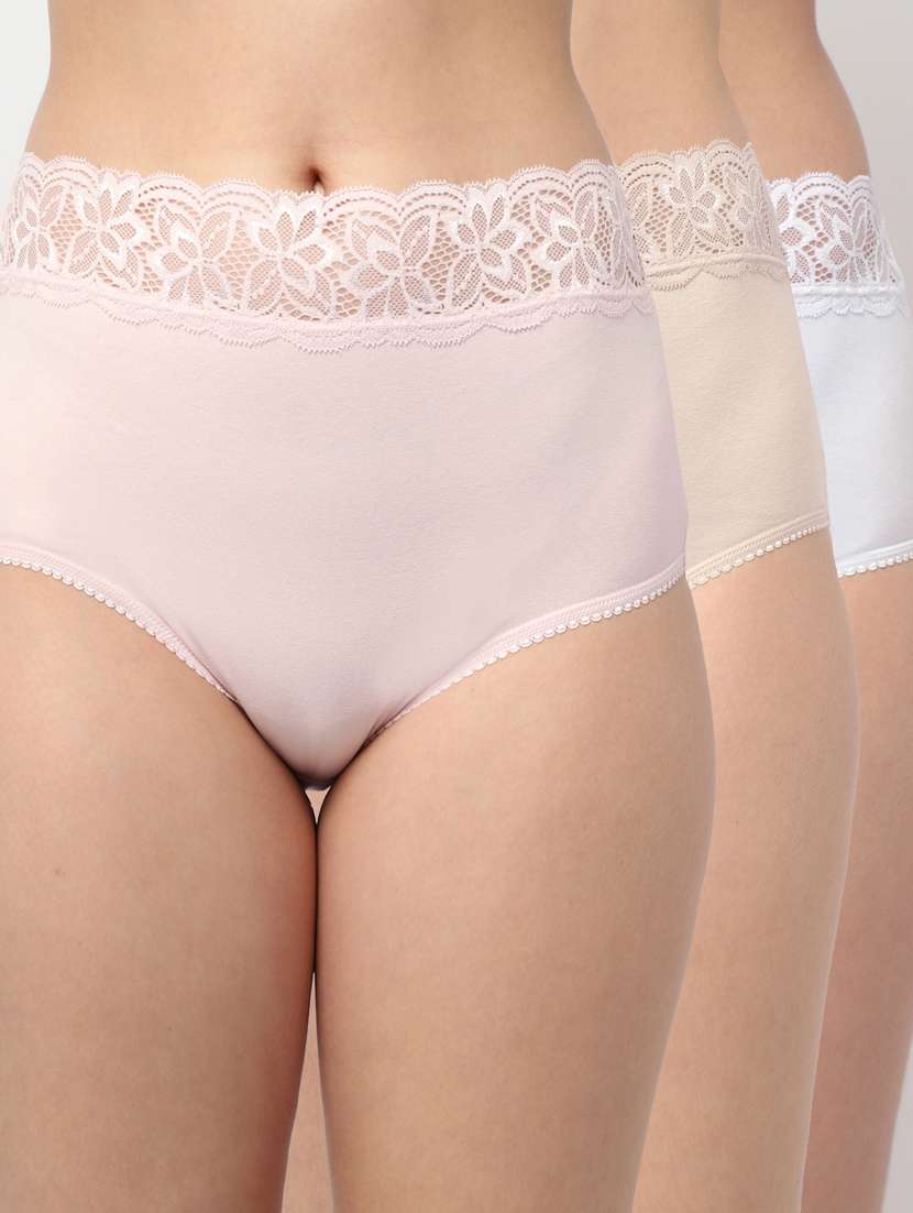 Women assorted mid-rise hipster briefs with Lace, each has an inner elasticated waistband, and double-layered gusset