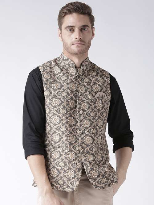 brown cotton nehru jacket - 15867321 - Very Small Image - 1