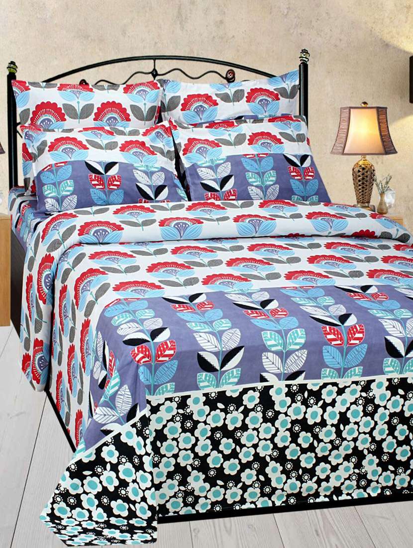 - » cotton floral double bedsheet with two pillow cover