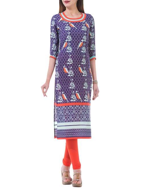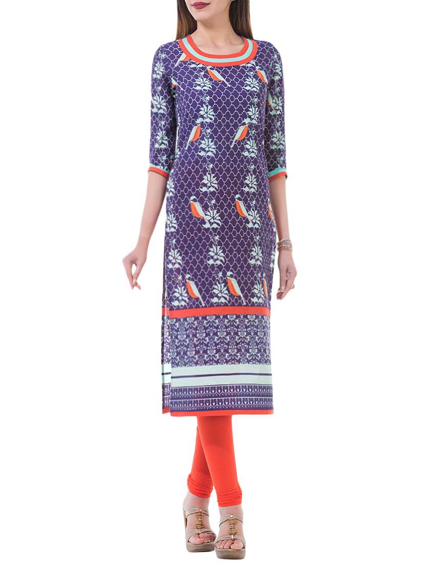 - » purple cotton printed straight kurta