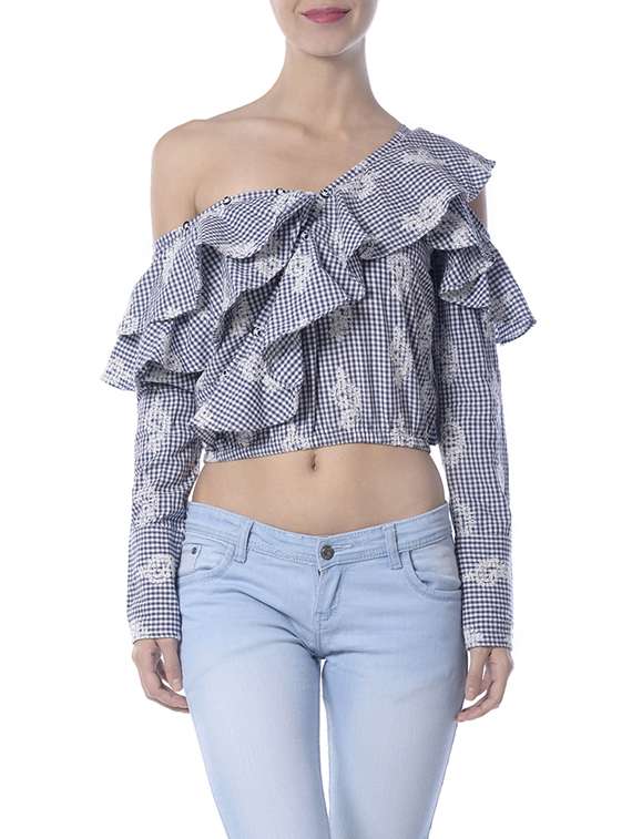 - » ruffle detailed cutout off shoulder top