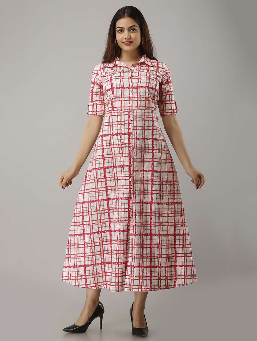 - Dress up in a soothing pattern and don this dress made of cotton material.