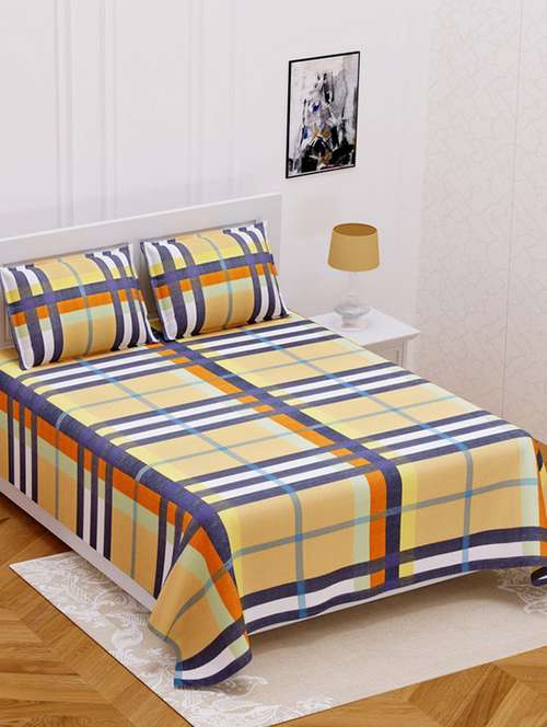 - » jaipur fabric check pattern super soft double bedsheet with 2 pillow covers
